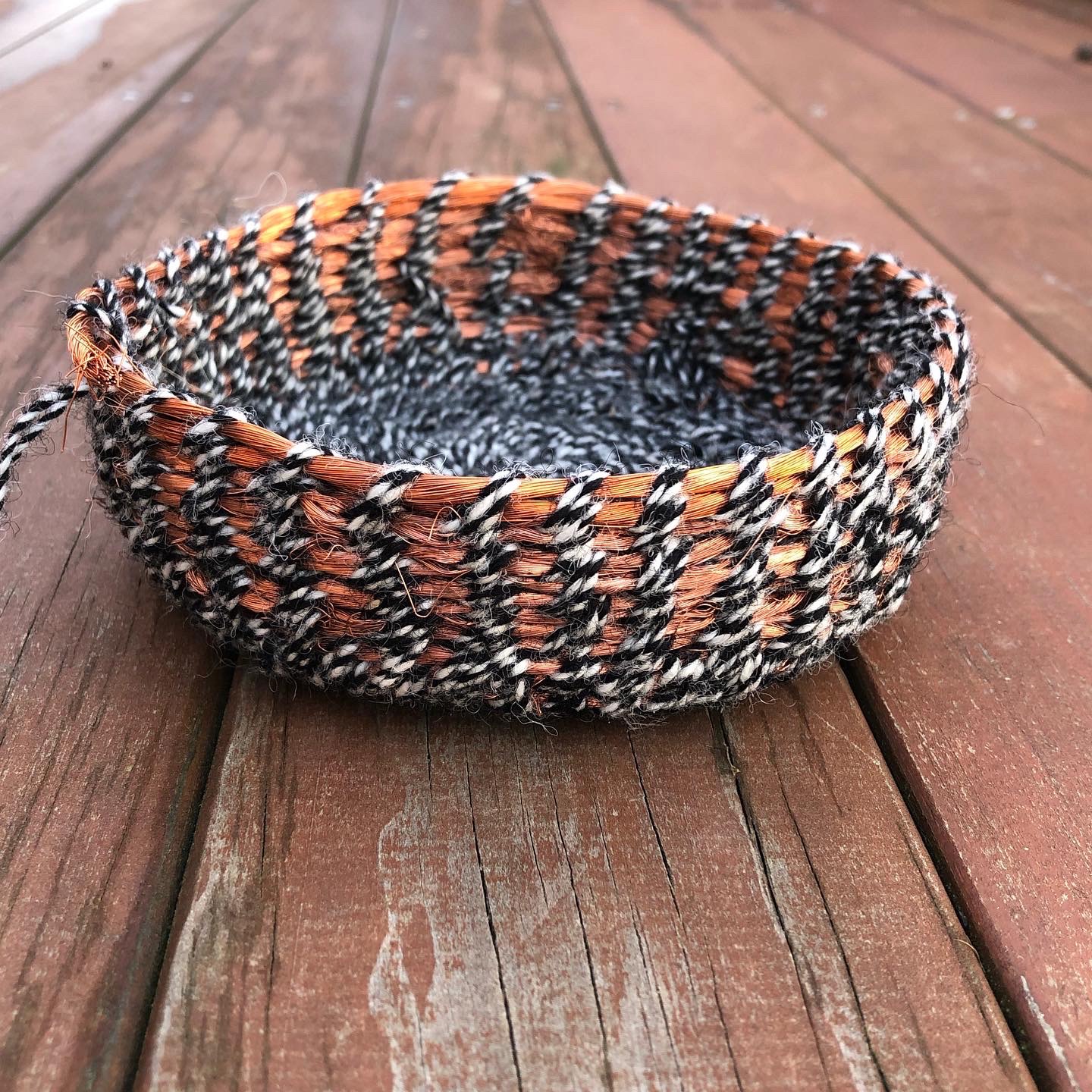 Previous Image Next Image Copper and Wool Shallow Basket Share this: Click to share on Facebook (Opens in new window) Facebook Click to share on Pinterest (Opens in new window) Pinterest Click to email a link to a friend (Opens in new window) Email More Click to share on Tumblr (Opens in new window) Tumblr Click to share on LinkedIn (Opens in new window) LinkedIn Click to share on X (Opens in new window) X Like Loading...